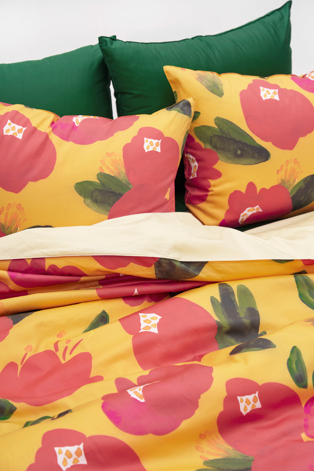 동백꽃의 강렬한 매력을 담은 누키트의 2020 첫 패턴, camellia 필로우커버입니다.