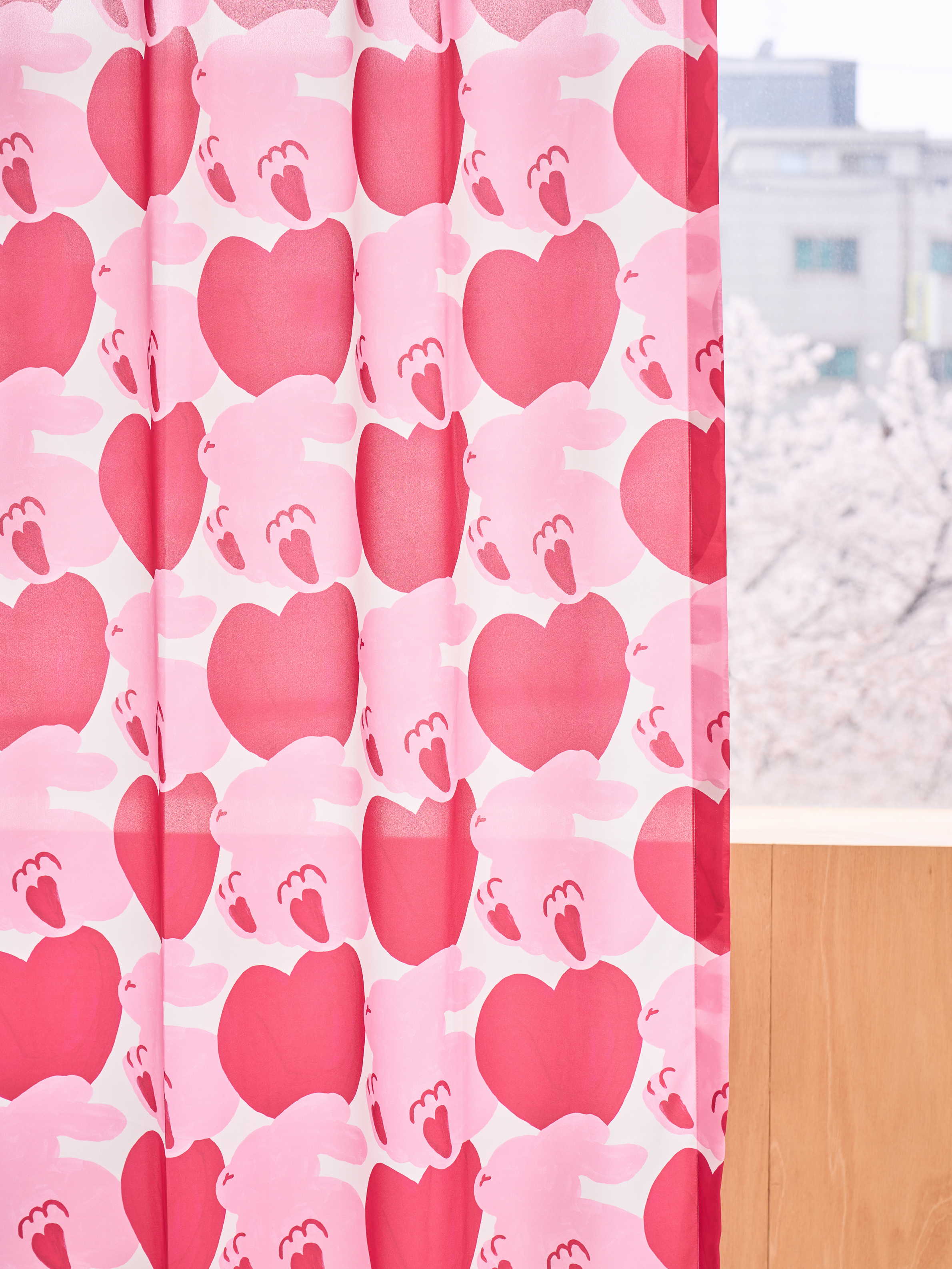 잔잔한 봄바람에도 하늘하늘 흔들릴 것 같은 가벼운 쉬폰 원단에 누키트의 유니크한 패턴이 더해진 쉬폰 커튼입니다.